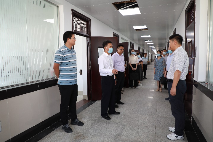 王乃学书记一行首先实地考察了qmh球盟会亚博科教馆、综合楼九楼实验室改造项目,听取了余克服院长、王少鹏副院长、施工单位负责人汇报项目进展情况。