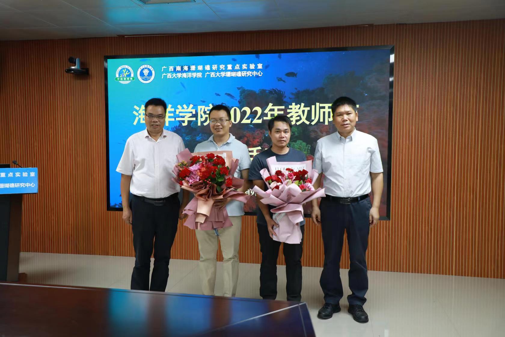 院领导慰问教师代表梁甲元(右二)、黄荣永(左二)