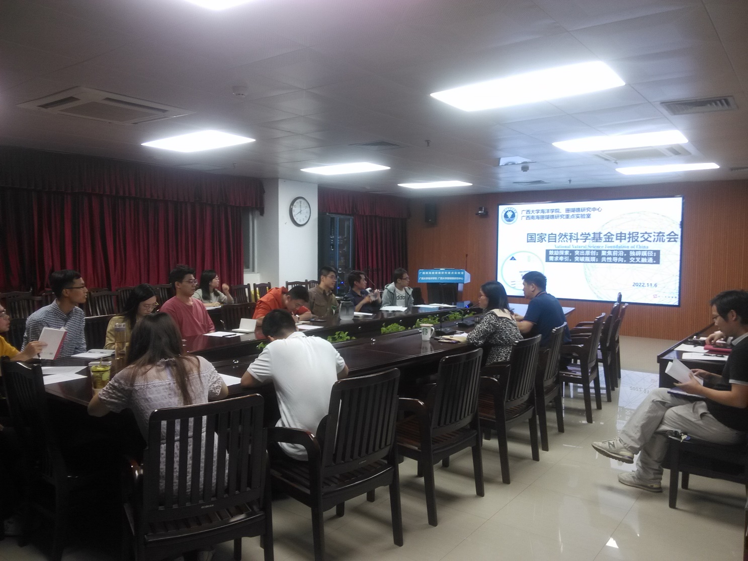 116日晚,我院组织了2023年国家自然科学基金申报交流会。会议由韦芬老师组织,院长余克服教授参加了交流会。邓珊珊、裴继影、雍阳阳、覃祯俊、左秀玲、林武辉等6位老师分享了基金申报方面的想法和经历。