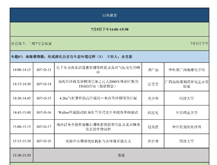 我院余克服教授作为第一召集人组织第七届地球系统科学大会“南海珊瑚礁”专题