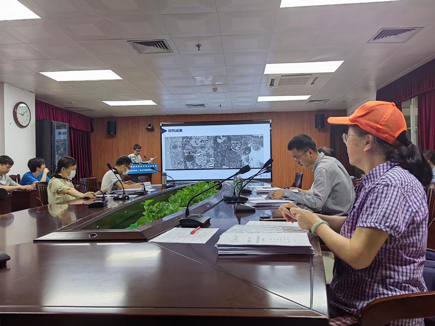 毕业生开展PPT汇报,校级督导杨洋教授(右一)参加毕业论文答辩指导
