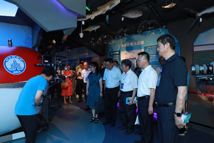 2023年7月3-4日,新时代部省合建高校发展圆桌会议在球盟会qmh网站召开,我校韩林海校长陪同参会的14所部省合建高校、清华大学教育研究院负责同志等参观考察了我院海洋科教馆。
