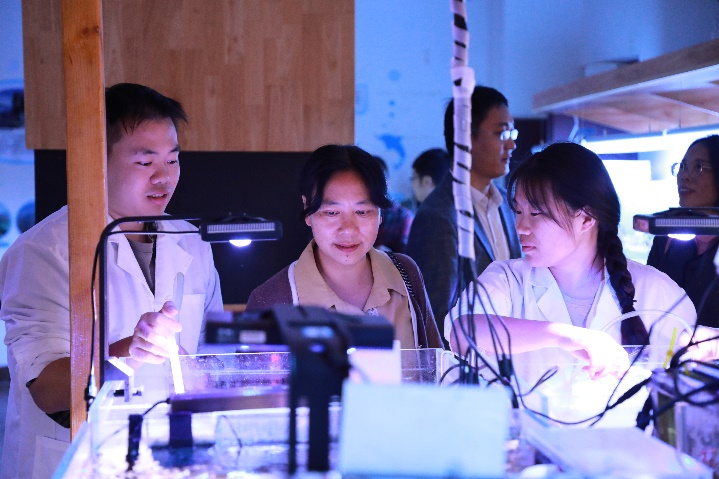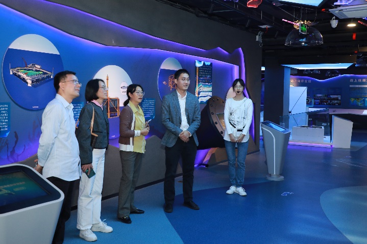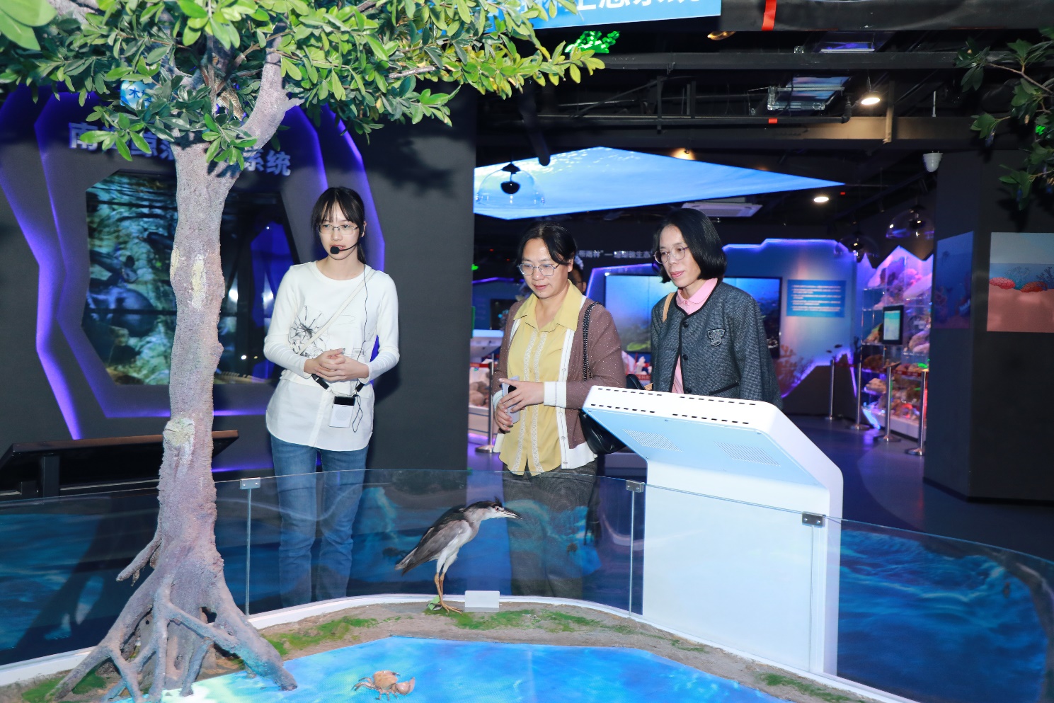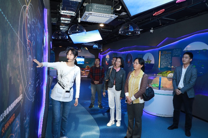 福建农林大学qmh球盟会亚博副院长黄小红教授(中)考察球盟会qmh网站海洋科教馆