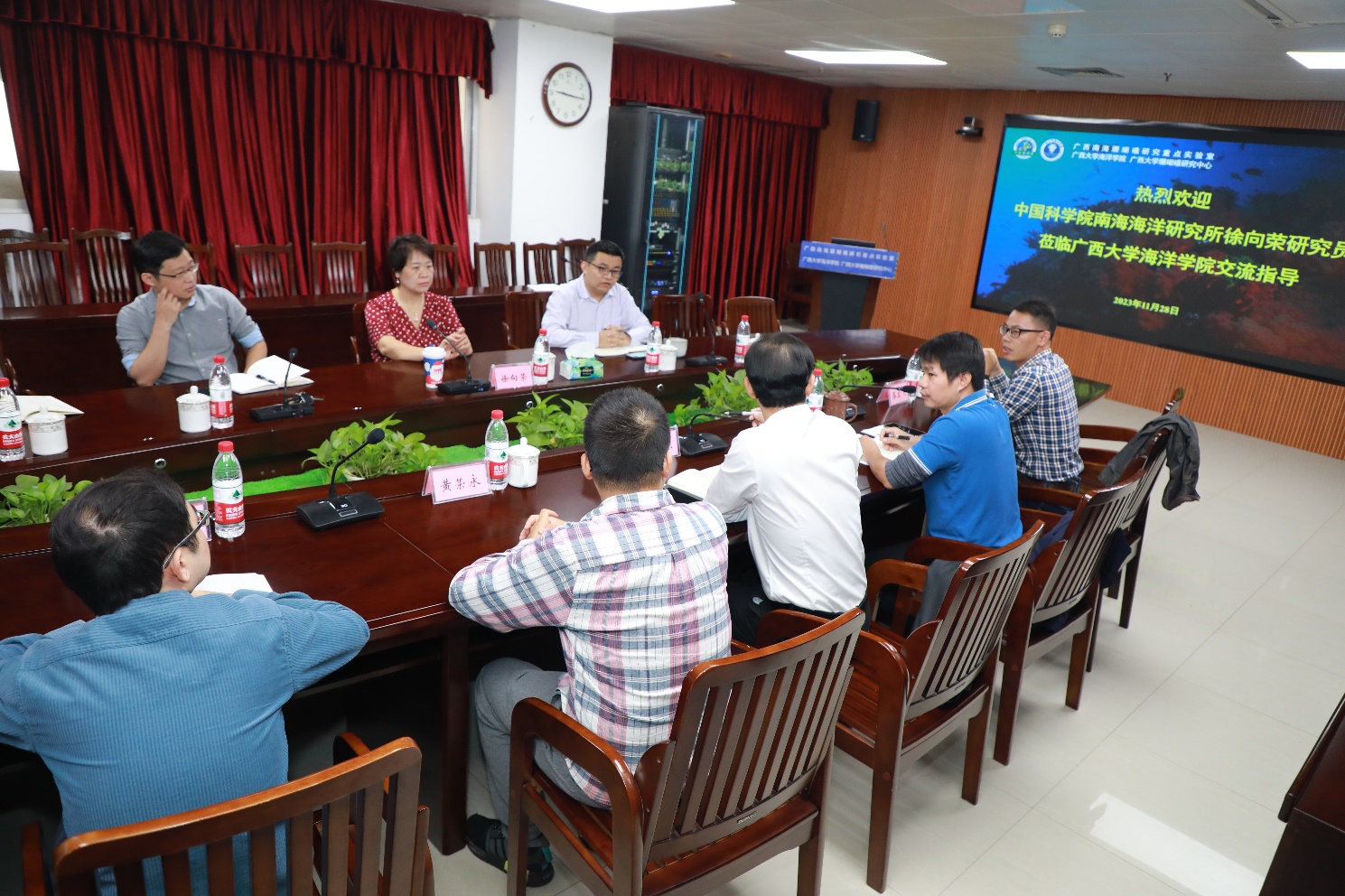徐向荣研究员还与我院师生进行座谈交流,学院党委书记秦华东主持座谈交流会,并介绍qmh球盟会亚博、广西南海珊瑚礁研究重点实验室的综合建设情况。双方就平台综合建设、海洋科学专业发展、qmh球盟会亚博人才培养、资源合作共享、团队协作与项目推进等进行深入交流,并探讨了未来长期交流和合作的可能。