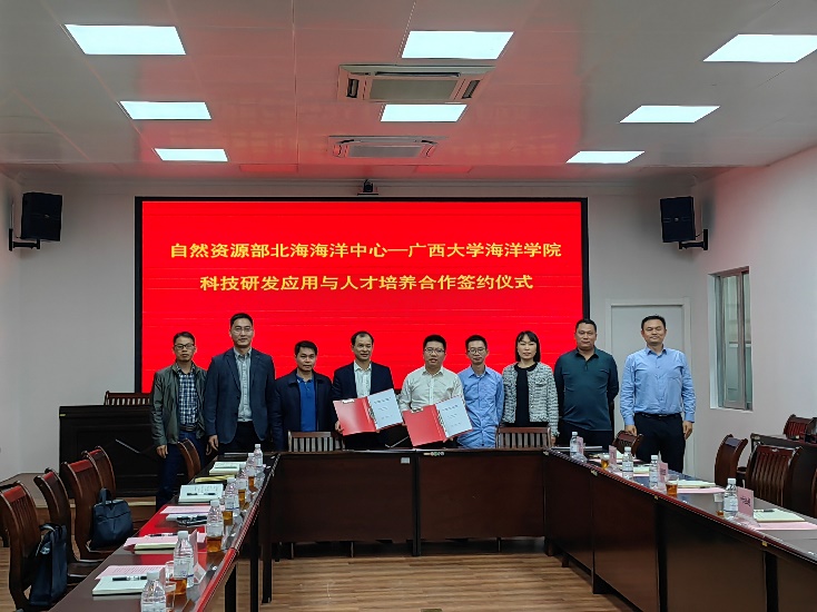北海海洋中心党委委员、组织人事科科长原丽丽、办公室负责人付蓉蓉、业务管理工作小组负责人刘保良、科技发展小组申友利高级工程师、环境监测与工程研究室雷学铁工程师,qmh球盟会亚博副院长梁甲元、王瑞,广西南海珊瑚礁重点实验室常务副主任、物理海洋教研室主任黄荣永,海洋生物与生态教研室主任苏宏飞,海洋环境与化学教研室主任宁志铭,张瑞杰副教授、姜伟副教授、郭泽军助理教授等一同参加仪式并座谈交流。(宁志铭、王瑞/文 qmh球盟会亚博/图 王瑞、周剑/编辑 秦华东/审核)